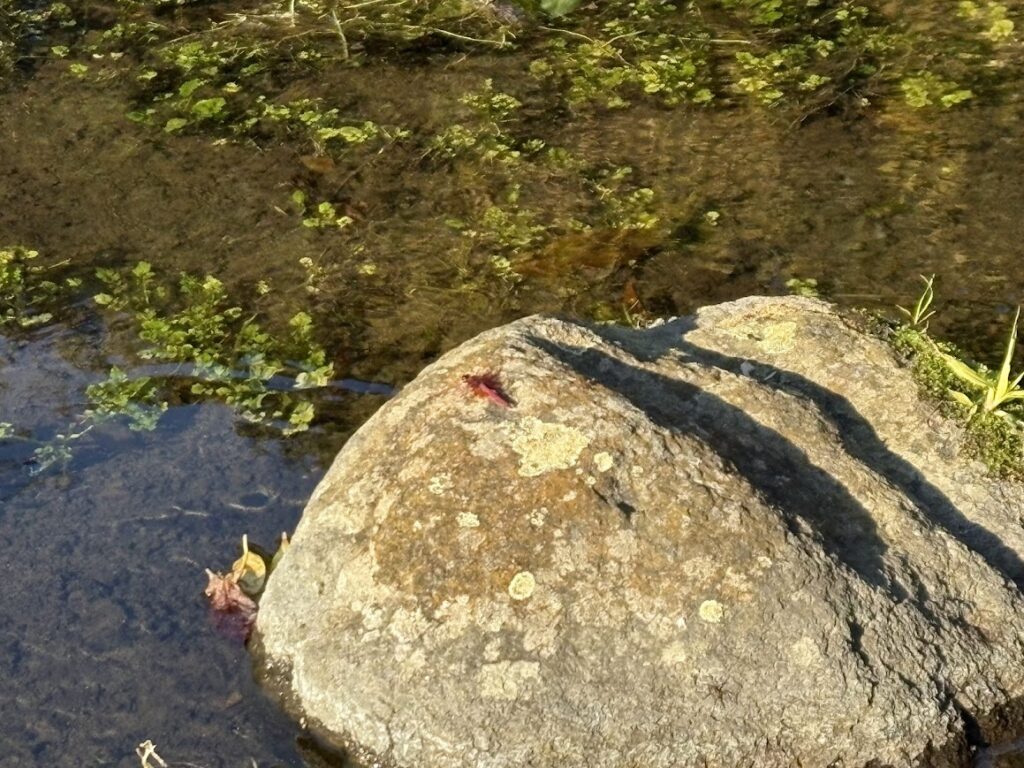 すると付近の岩に赤とんぼが飛んできてしばしの休息。