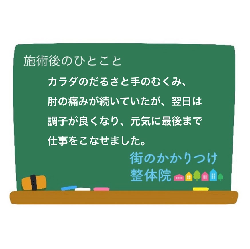手のむくみ、だるさ、肘の痛み