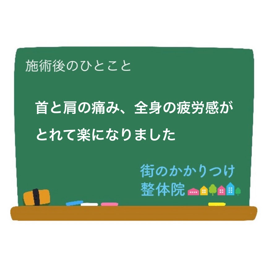 施術後には「首と肩の痛みと全身の疲労感が