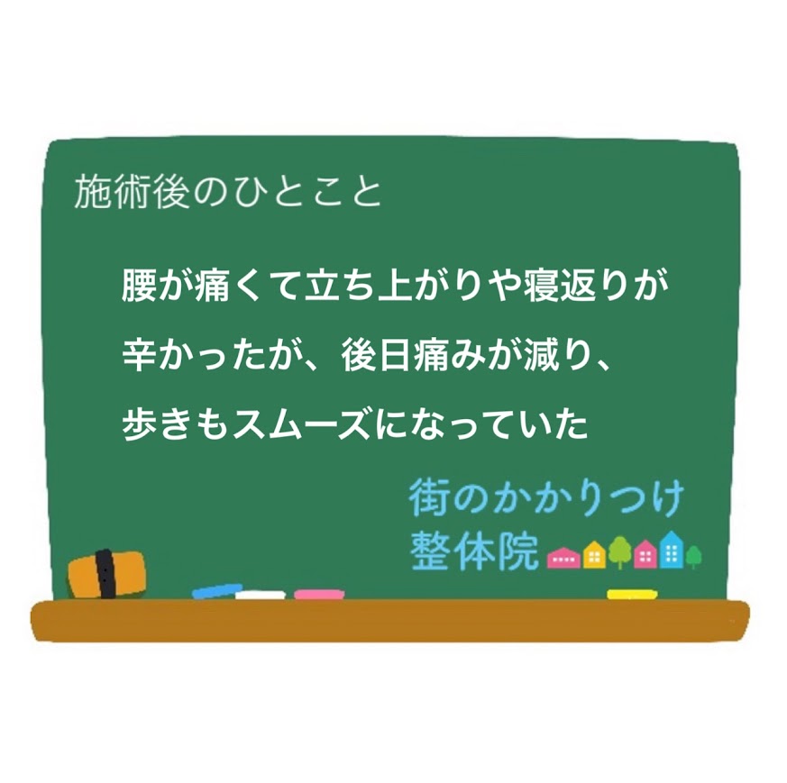 後日、痛みの軽減、歩きやすさ、疲れの消失と