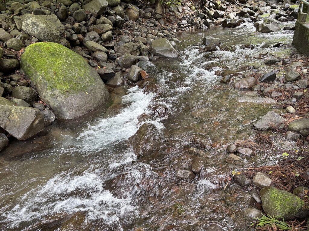 勢いよく流れる清流、川の音や野鳥のさえずりは癒しの