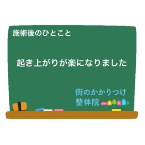 カラダが自由に動かせない状態で入院生活が続き、筋力の衰えや関節の固まりで退院後も布団から起き上がるのも時間を要し、時にはトイレに間に合わない事もあったそうです。 定期的に整体を利用いただいたことで、施術後には手を使わずに […]