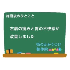 右腕を挙げると三角筋周辺に痛みが出て耳まで付かない。胃の不快感は食後の消化時間が長くかかっているとのことで来院。 胃の下の方に鈍い硬さがあり、右肩は内旋のクセが出ていました。内臓調整で胃に柔らかさが出てきて、肩のこわばり […]
